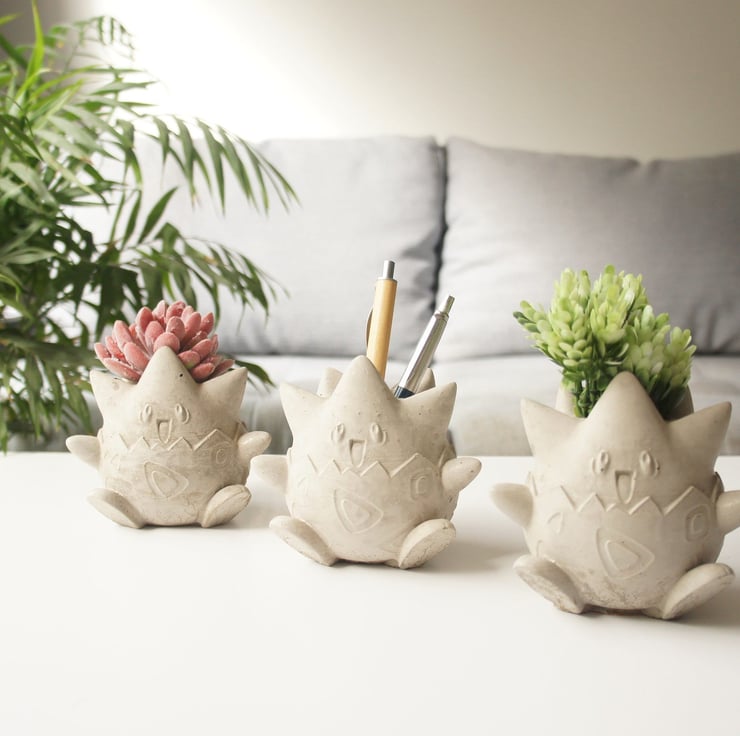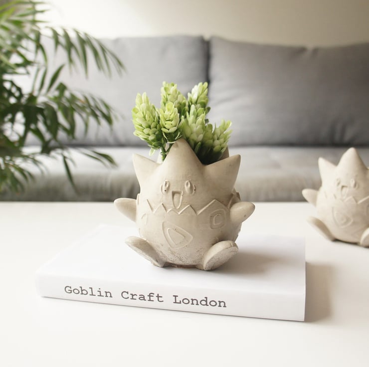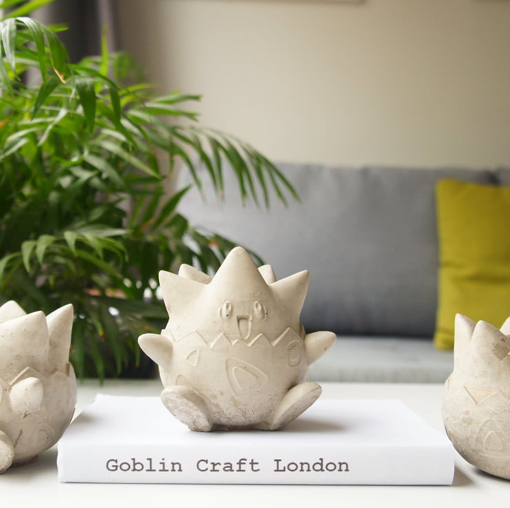 Concrete is a raw natural material and due too this will never set exactly the same way, handmade concrete items will have air bubbles and have slight colour differences as there not factory made making each one fully unique. The Togepi is hand painted individually.