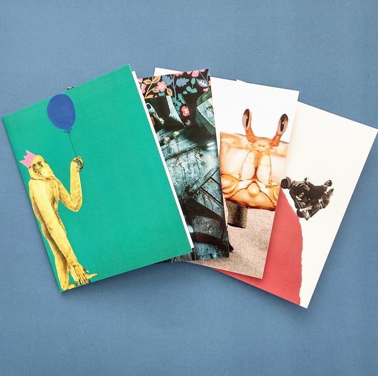 Mixed collage cards set of 4 - photo quality, gloss, printed cards. Images are taken from homemade, artist-designed paper collages designed by me.