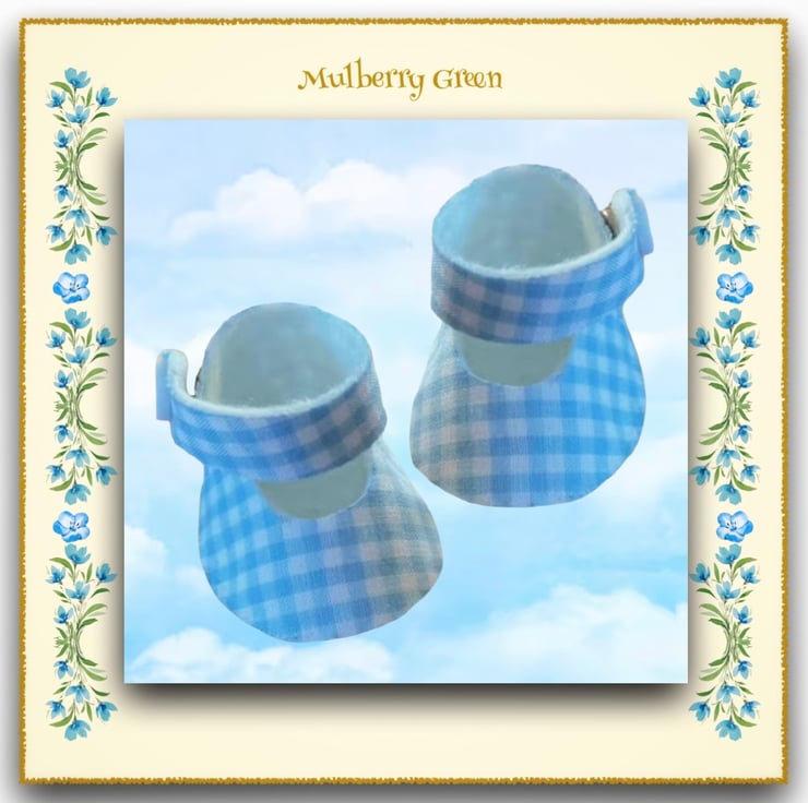 A little pair of pale blue gingham Mary Jane shoes, to fit the Mulberry Green characters. The shoes look lovely with the little dresses in my shop.