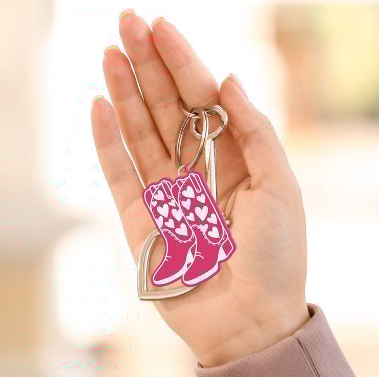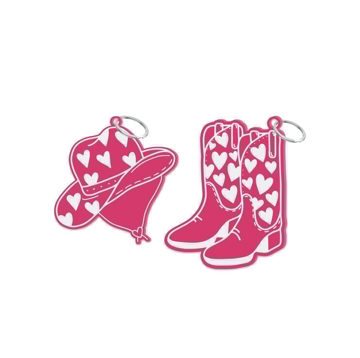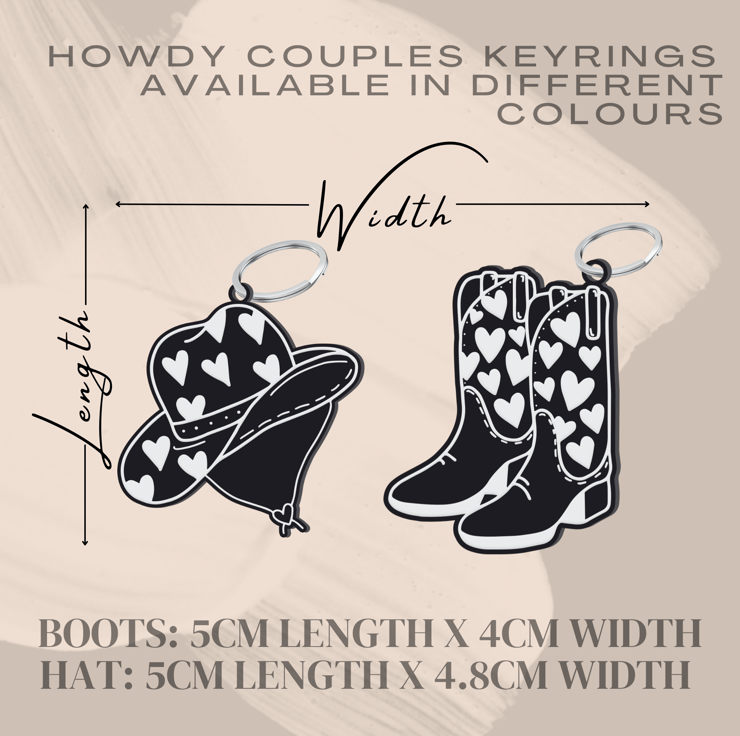 The perfect duo! Elevate Valentine's Day with our charming Cowboy Hat and Boots Couple Keyrings. Exquisitely crafted to blend rugged elegance with romantic flair, these keyrings symbolize timeless love and adventure. Perfect for couples who cherish unique, meaningful gestures, these keyrings are both a stylish accessory and a symbol of everlasting affection. Celebrate love in true cowboy style this Valentine's Day.