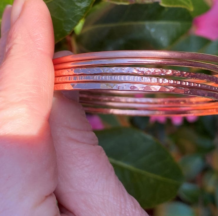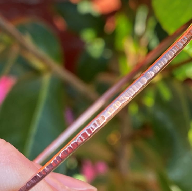 Handmade, hand-forged, copper bangle bracelet made to size/order using 2mm thick (gauge 12) natural 100% copper wire