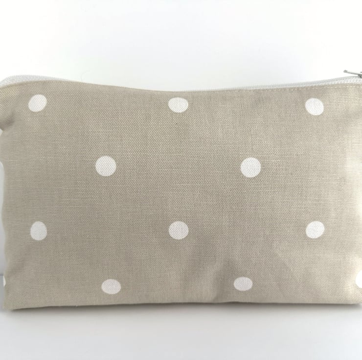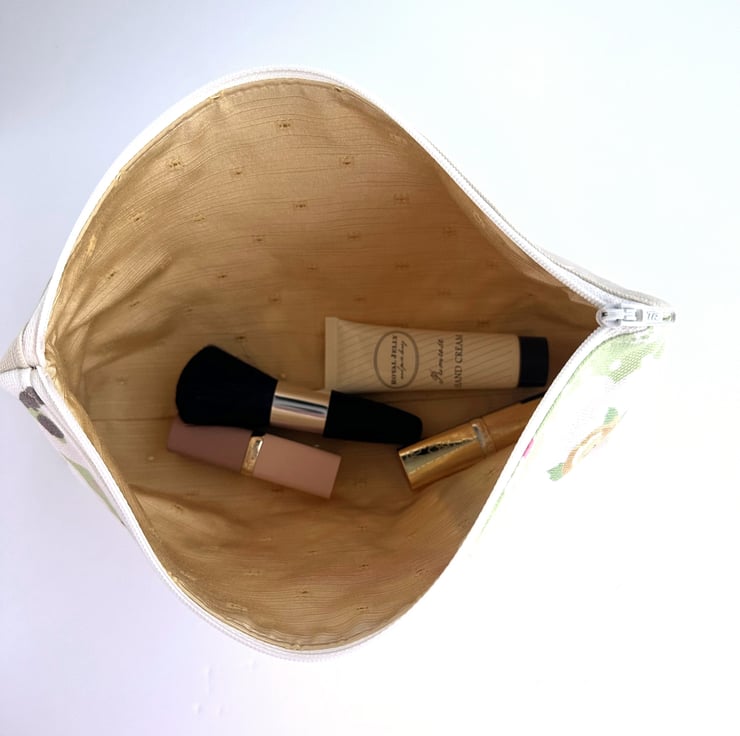 This lovely large-sized cosmetic bag can be used to store lots of make up and could also be used as a pencil case, or a storage pouch for other items. With its beautiful fabrics and pretty pastel colours, the bag would make a lovely gift.