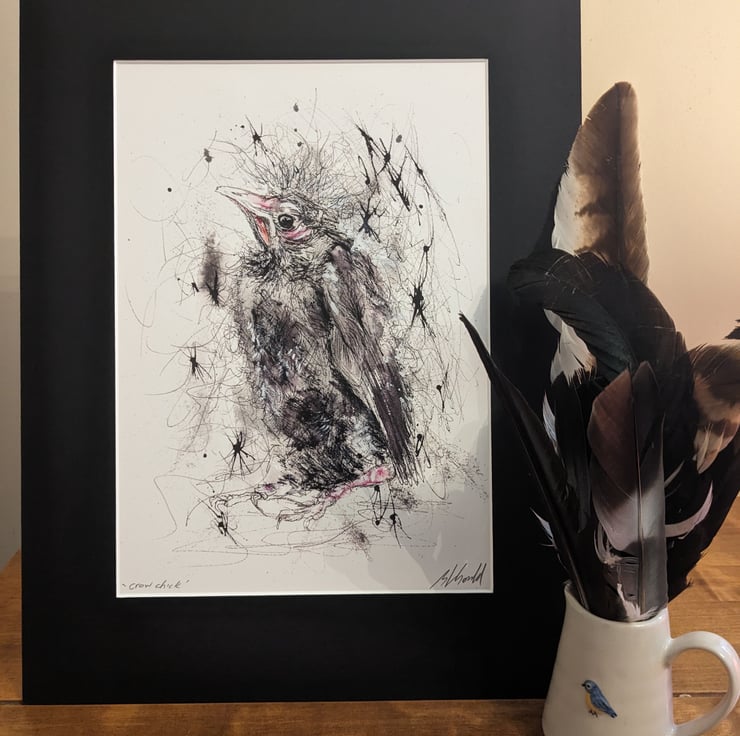 I went through a phase of doing a few baby bird paintings. Naturally with my love of corvids a baby crow had to be included.