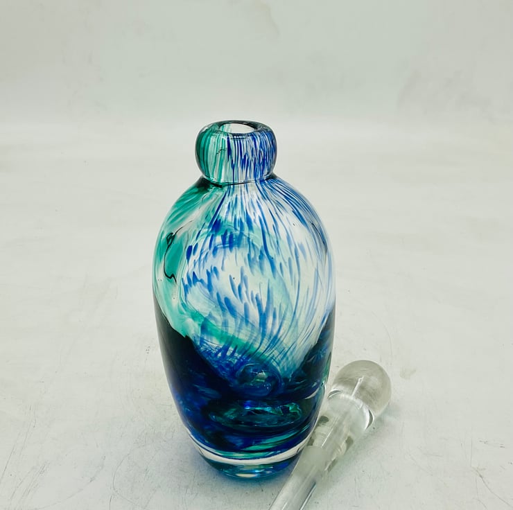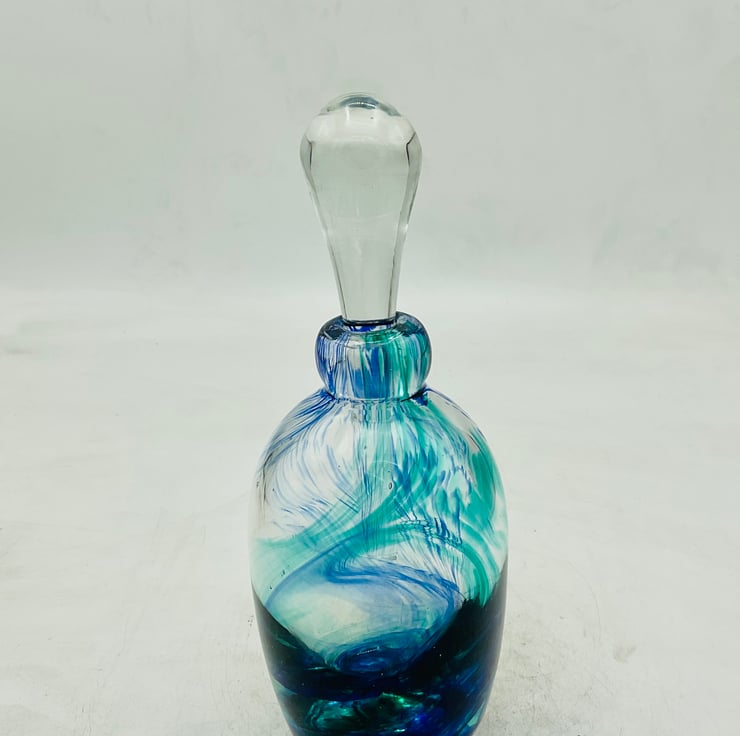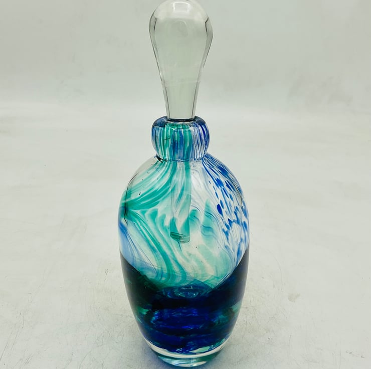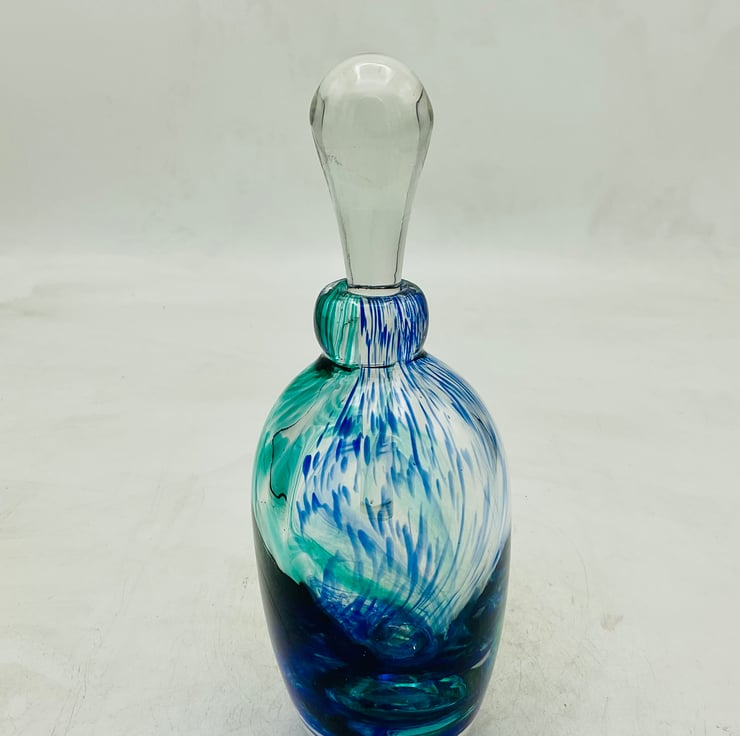 Blue Green Tidal Bottle measuring 19cms high with stopper