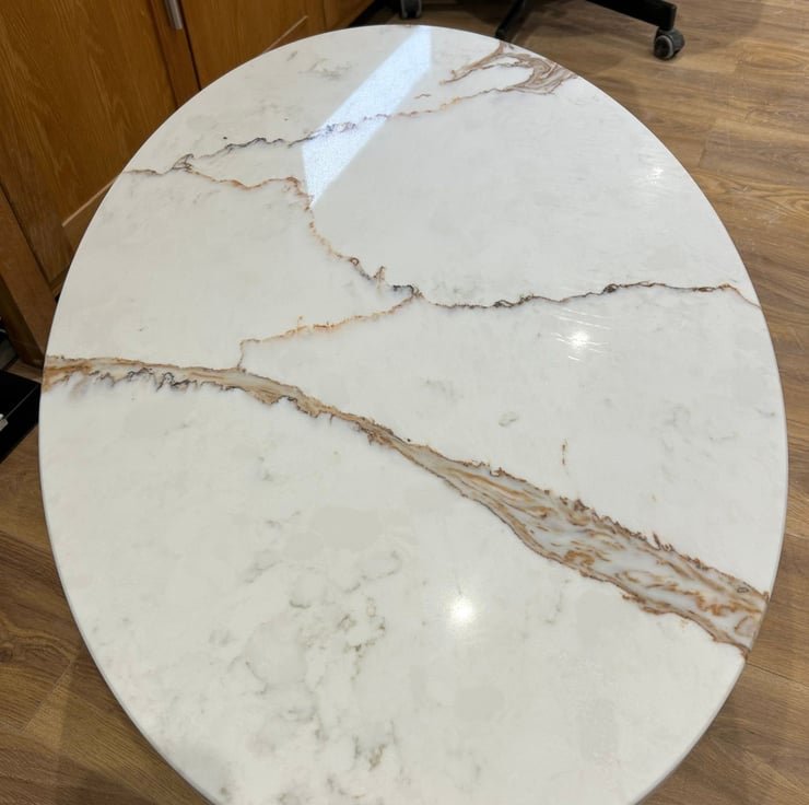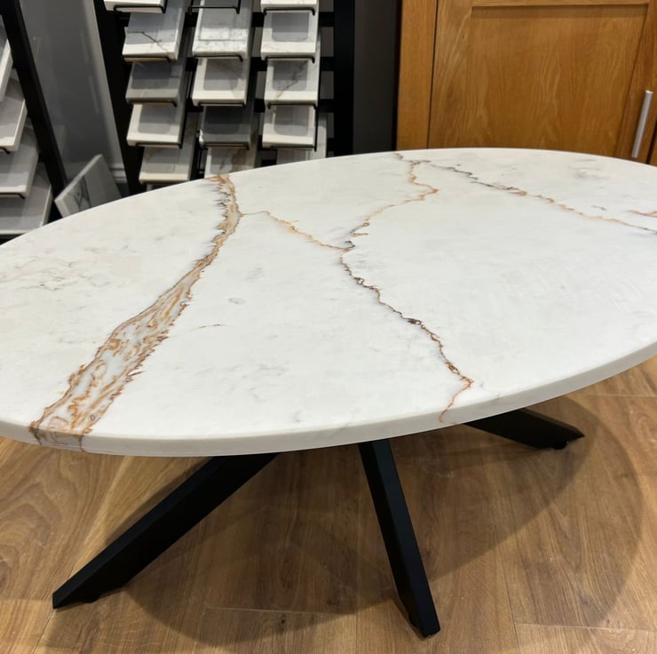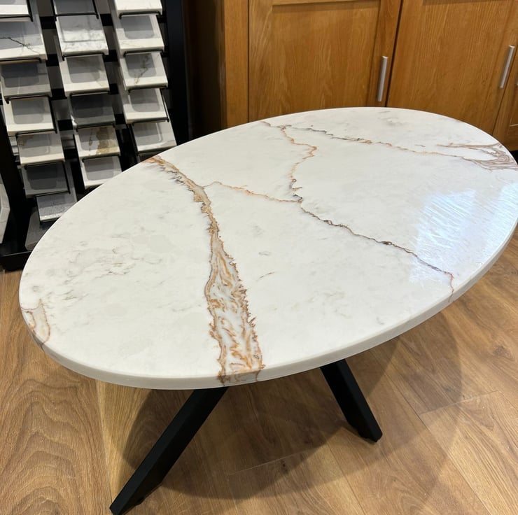 Add a touch of elegance to your living room with this bespoke oval coffee table. Crafted from high-quality 20mm Palermo quartz, this stunning piece features a multicoloured finish that adds a pop of colour to your space. Measuring 44cm in height, 88cm in length and 59cm in width, it offers ample space for your coffee cups, books, and other essentials. The quartz tabletop is both durable and easy to clean, while the stone material ensures long-lasting use. Ideal for modern homes, this coffee table is a must-have for anyone looking to elevate their living space.