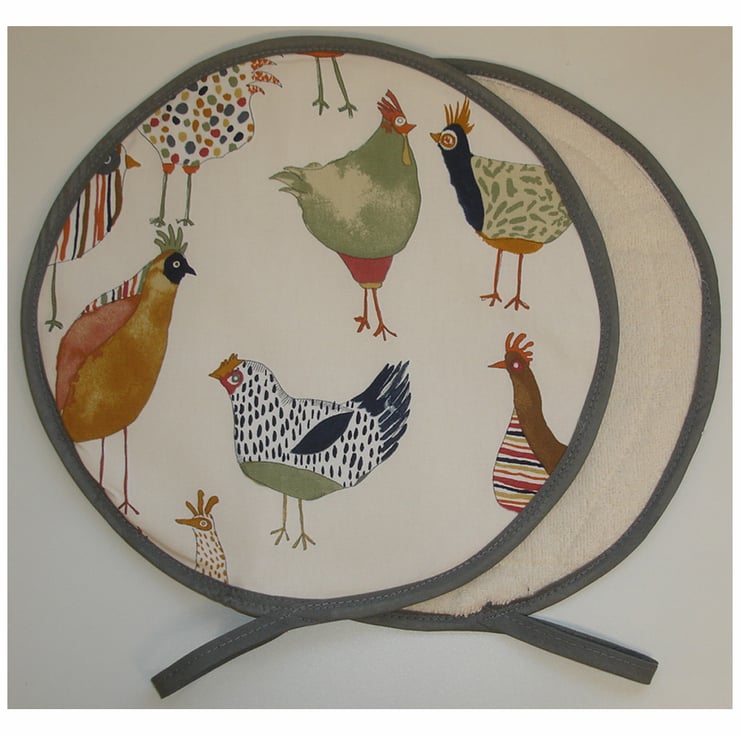 Each mat has three layers - Facing cotton fabric, a layer of padding and a layer of towelling - Making it also suitable for mopping up and pot-grabbing!