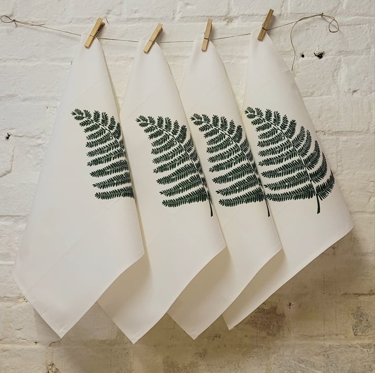 A set of 4 beautiful crisp, cotton napkins hand screen printed with a single fern.