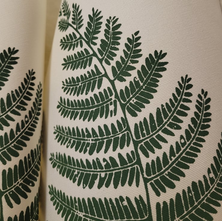 This fern design is based on my original lino print, which I have transfered to silk screen.