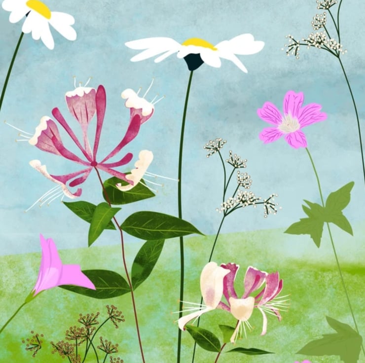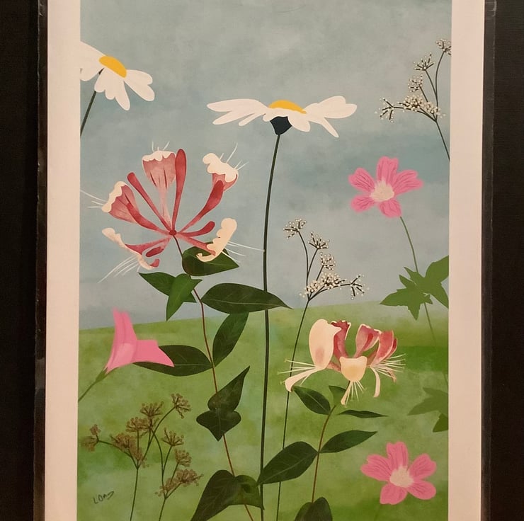 Honeysuckle - A4 high quality, open edition signed print of summer flowers from one of my digital illustrations of flowers.
