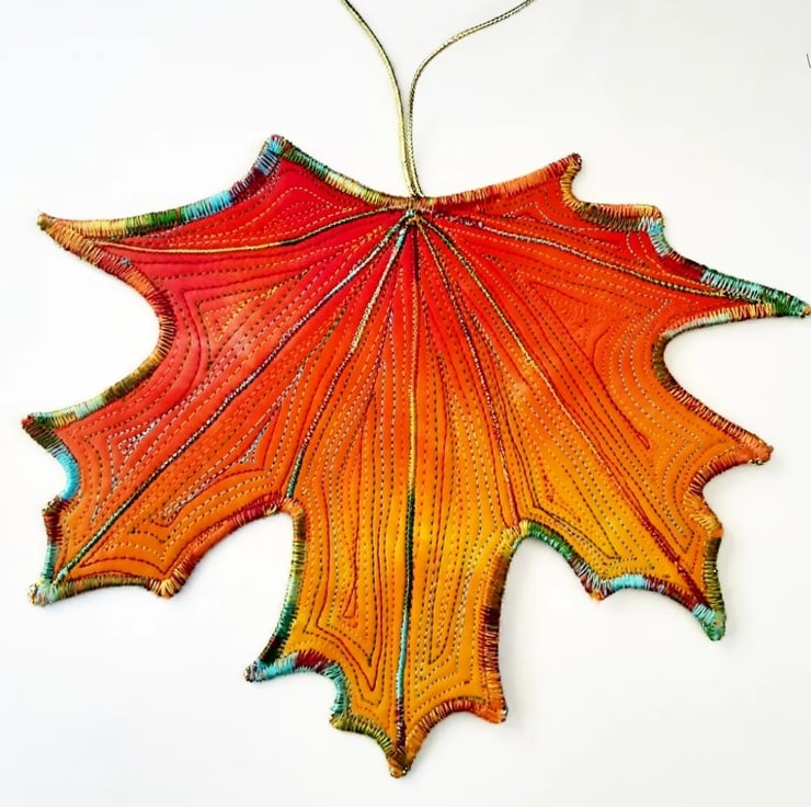 Made from layers of fabric including hand dyed Egyptian cotton and silk fabrics using the free machine embroidery style of sewing