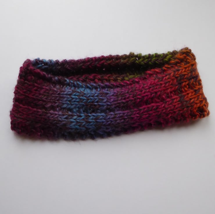 Stripy hand knitted mixed wool / acrylic fibre headband warmer for colder days. Fits all sizes.
