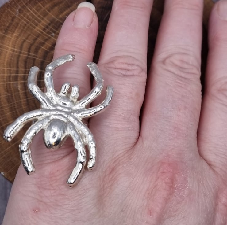 Usually I work with real organic items but I couldn't resist coating this fabulous plastic spider in silver to make this chunky statement gothic ring, perfect for the vampire, witch or spider-lover in your life! Size L.