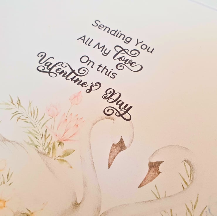 Valentine's Day card, featuring two (2) swans in a lake, shaping a heart! With a short verse, perfect for both old or new relationships!