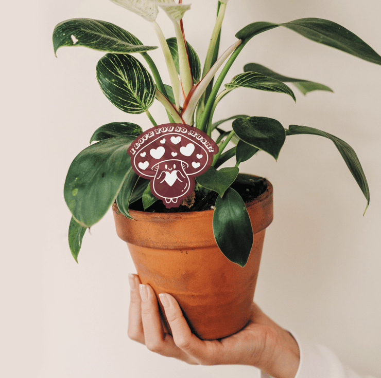 Add this acrylic plant tag to almost any potted plant to instantly transform it into a thoughtful small gift, perfect for Valentine's Day or anniversaries. Ideal for plant lovers or anyone who appreciates the magic of fungi, this mushroom plaque turns any plant into a whimsical and heartfelt gift.