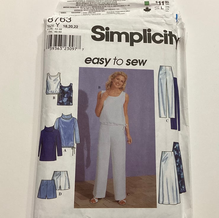Uncut, Simplicity 8763 Sewing Pattern for tops, shorts, trousers and long skirt, Size Y 18,20,22