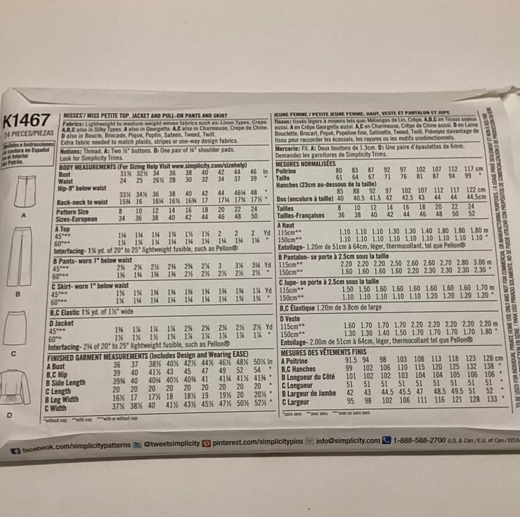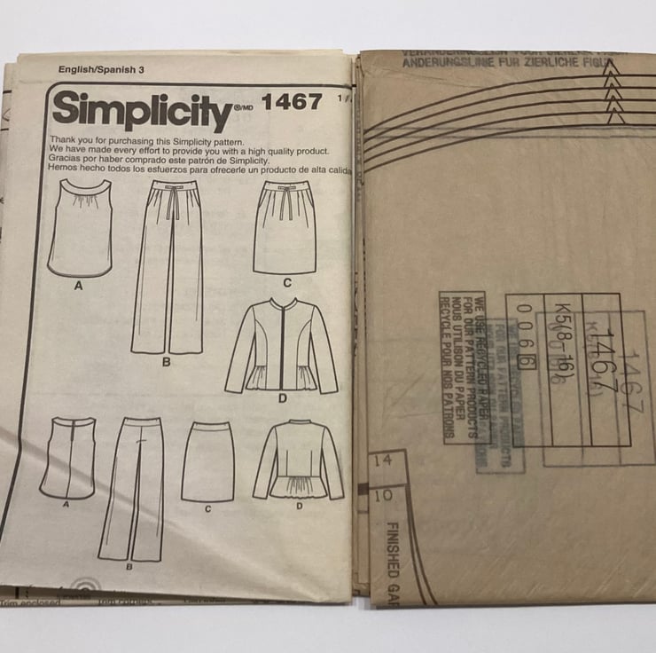 Uncut, Simplicity K1467 Sewing Pattern for top, jacket, trousers and skirt, Size U.S 8-16