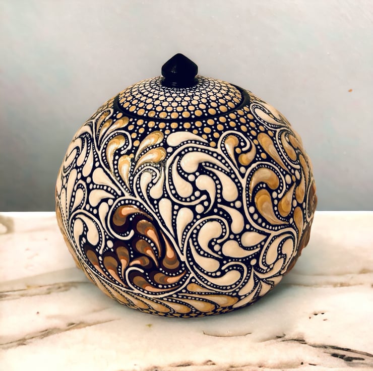 This elegant piece has been carefully cast from high quality plaster and hand painted with a stunning design of swirls and dots in champagne, gold and white. Several layers form each swirl to create a beautifully tactile surface.