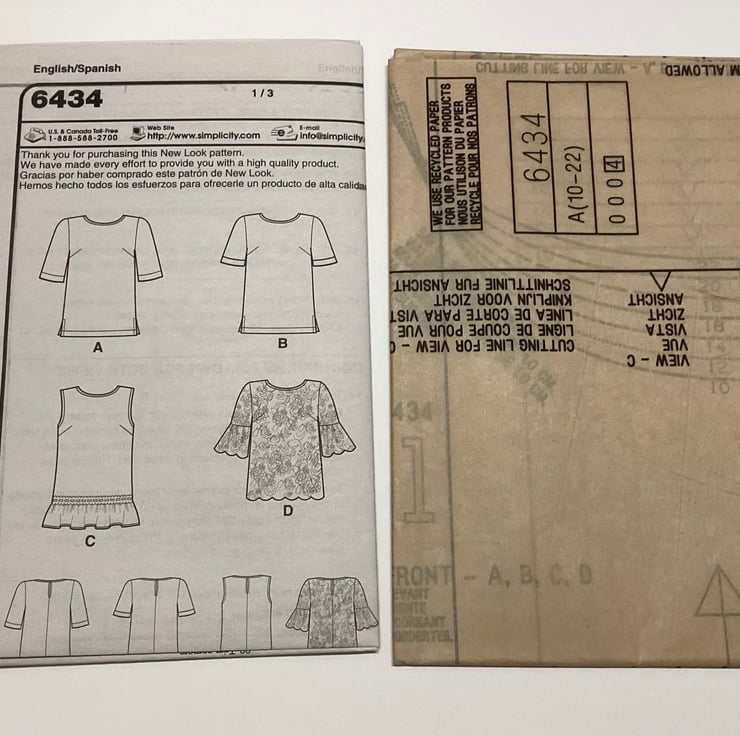 Uncut, New Look K6434, blouse Sewing Pattern Size U.S 10-12.