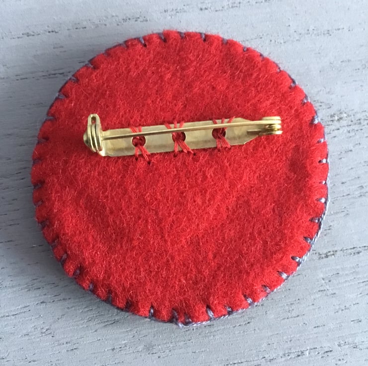 This brooch is 2 inches (5 cms) in diameter…….a nice wearable size. A brooch pin with a safety catch for secure wear is sewn on the back.