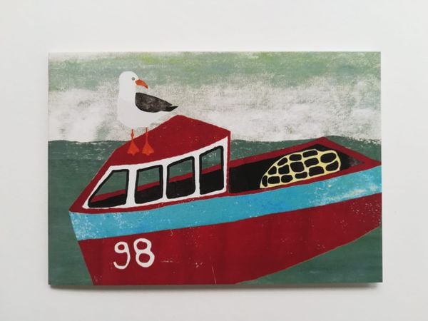This piece has been handcrafted by myself using printmaking and digital processing techniques. Brought to you as a lovely greetings card left blank for your own message. A Kraft envelope is supplied.