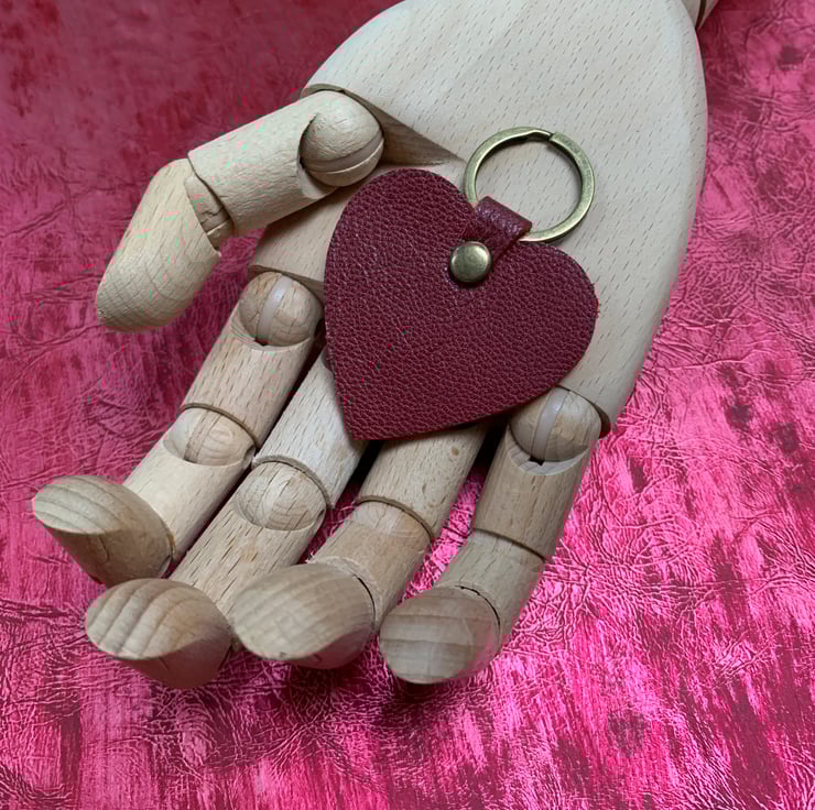 A sweet heart shaped handmade leather keyring or bag charm with antique gold hardware would make a perfect gift to attach to keys, bag, purse or luggage.