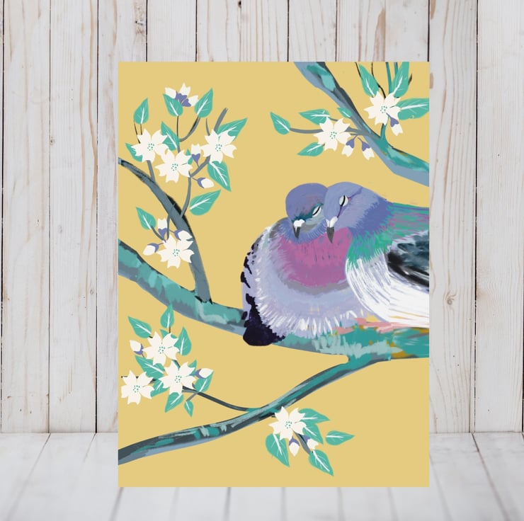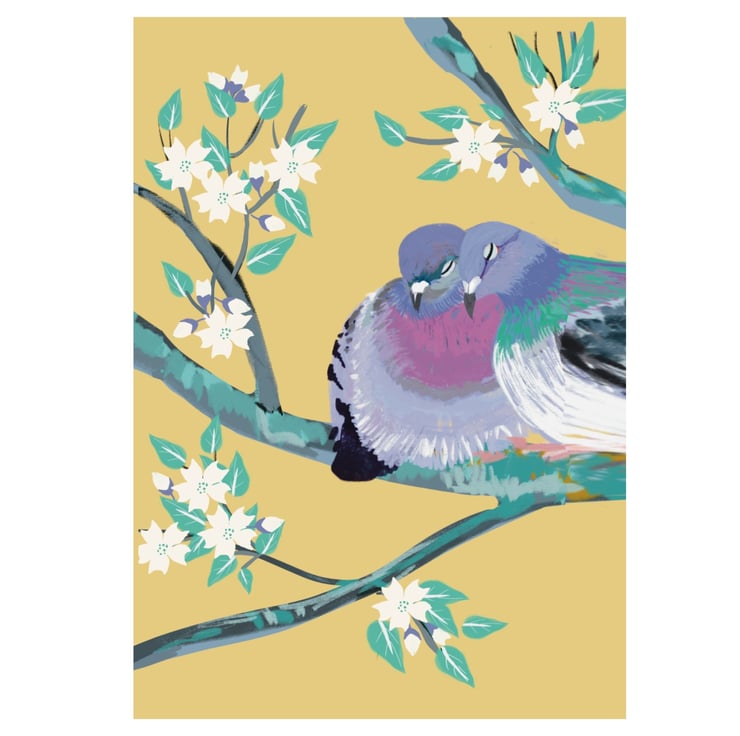 A new collection of cards for 2024. This one inspired by the loving pigeons who often snuggle amongst the blossoms