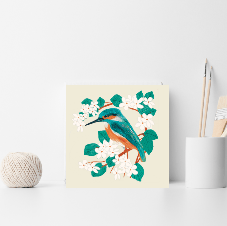 Brighten up someone's day with a gorgeous Kingfisher and blossoms greeting card. The stunning image of a kingfisher sitting amongst beautiful blossoms is sure to bring a smile to anyone's face. With the inside left blank, you can personalise your own special message for a variety of occasions. This card is perfect for sending a note of thanks, a heartfelt message, or for any special occasion. Buy today and make someone's day with this beautiful ready-to-send greeting card.