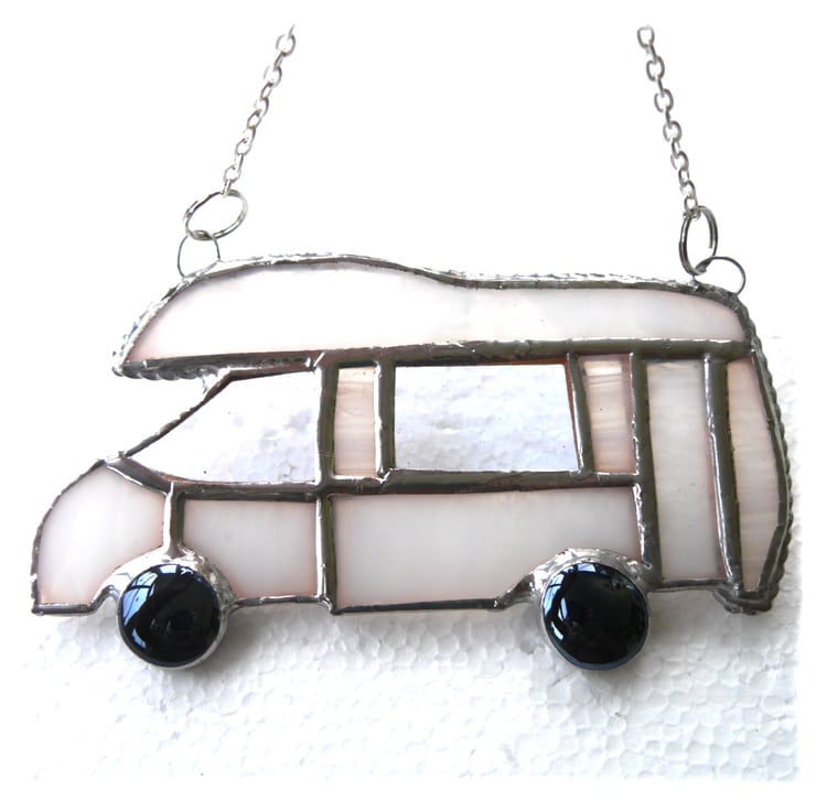 The glass is soldered together, polished and ready to hang in the window from a chain which is securely attached to the top of the motorhome. Please do not try driving with it hanging in the window as it is glass and therefore a little delicate.