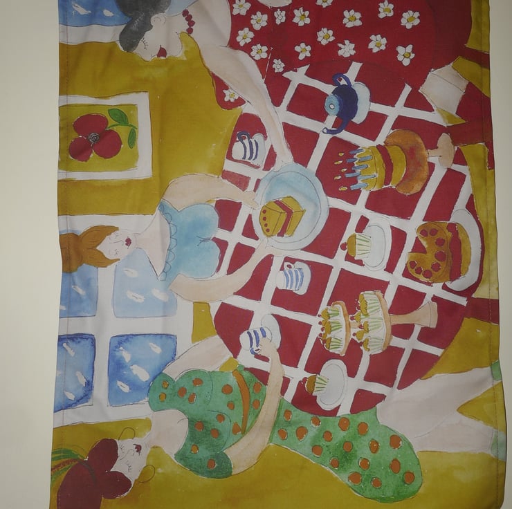 This thick cotton Teatowel has been designed from my original artwork and then printed on to this teatowel. It measures approx 46" x 66" and is good quality and made in the UK. There is also a loop to hang it.