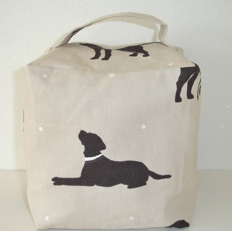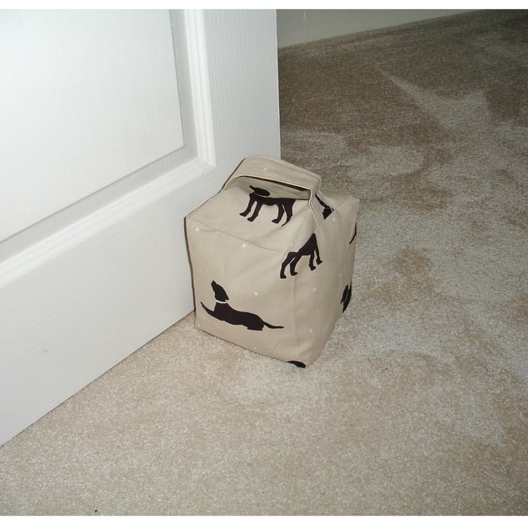 The Door Stop comes empty ready for you to fill with rice, beans or sand. Full instructions and filling bag are included. The base has a velcro opening/closure, making it easy to fill and empty for washing and ensures that your choise of filling stays firmly inside!