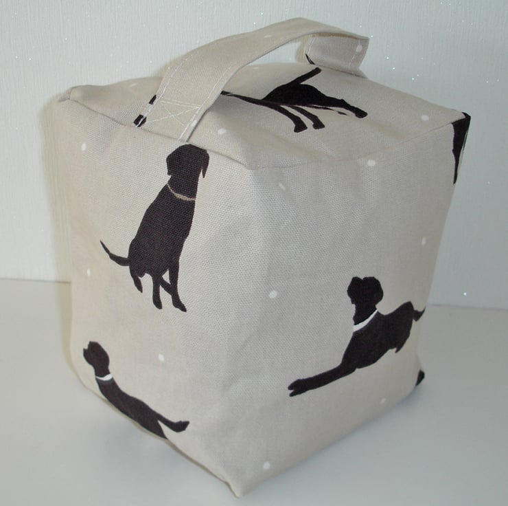 A 6" Cube Door Stop with Top Handle. When full, the door stop weighs approx 2-3kg. If you would prefer a larger or smaller size, please contact me.