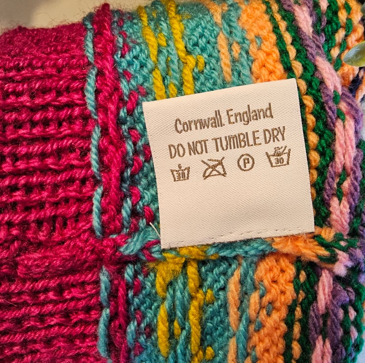 Baby knitwear is designed and hand crafted by Demelza Designs in Cornwall meeting UK baby safety standards, Only branded premuim acylic, acrylic/natural fibre blends or pure natural fibre yarns are used in baby knitwear which conforms to BS984/76 standards.