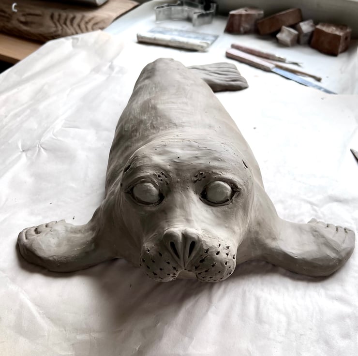 Here, in Wells next the sea, I fell in love with seals, such beautiful animals. Seals were my first choice for sculpting, with those big sad eyes. I always love to make seals and they have become extremely popular and a must have after seals trips, near Blakeney. I sell my seals in quay art gallery, Wells and the handcrafted company, in Blakeney.
