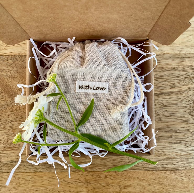 Teamed with a rustic jute gift bag, you can choose the wording of “thank you” , “just for you” or “with love”
