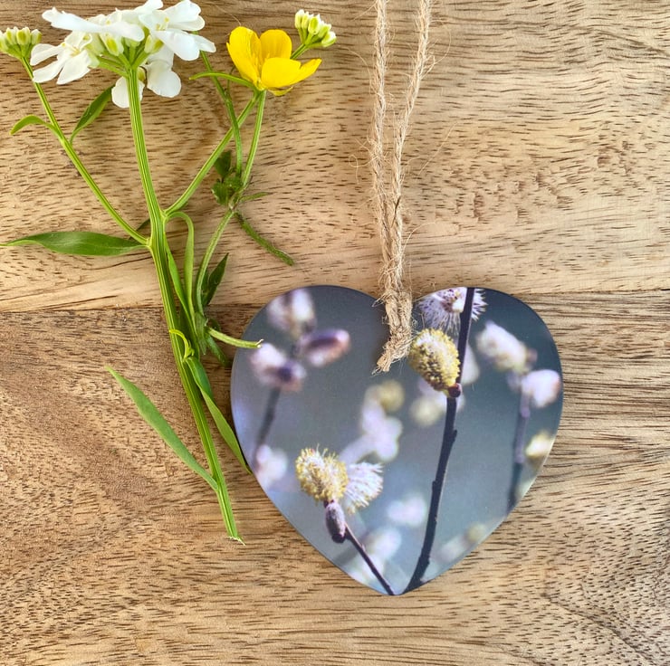 This heart depicts a photograph of willow catkins bursting into life in springtime. It was taken at a nature reserve close to home in the Staffordshire Moorlands where the trees overhang the water.