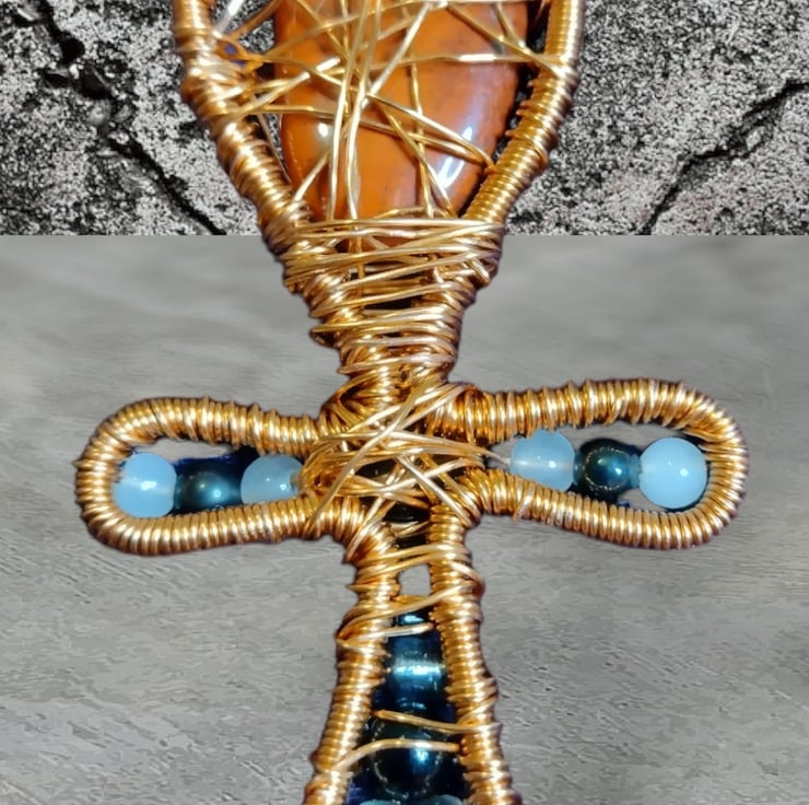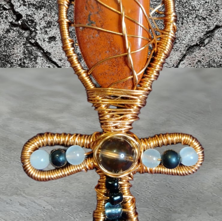 Pure Copper wired Ankh with a selection of Crystals, Glass and Wooden Beads.