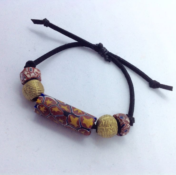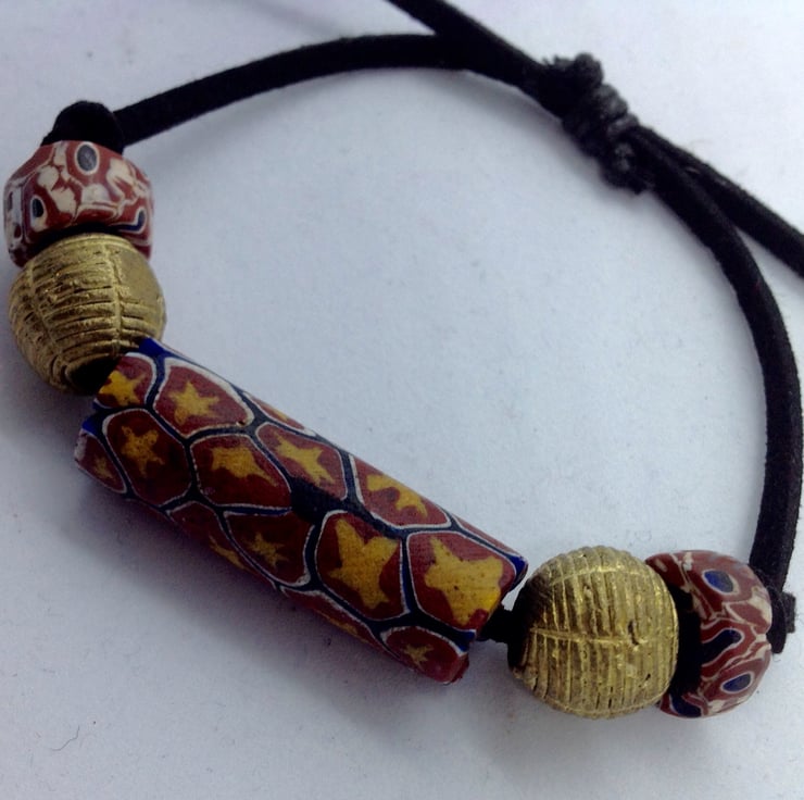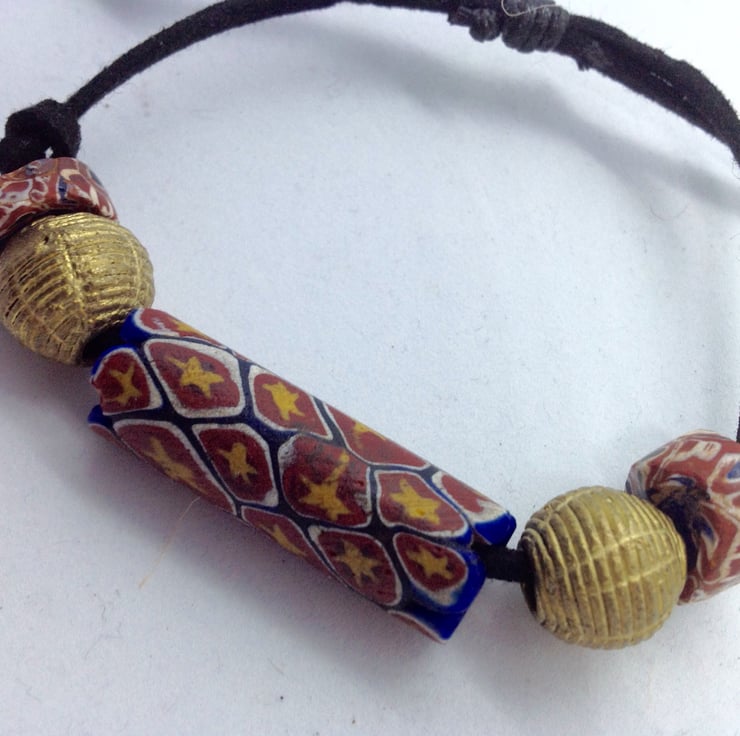 Adjustable bead bracelet with rare antique trade beads and African brass beads
