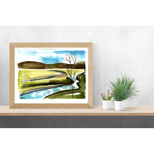 High quality unframed Giclee print of an original watercolour painting. The image depicts the stunning Mawddach Estuary in North Wales. A contemporary piece with fresh, bright colours guaranteed to bring any room to life!