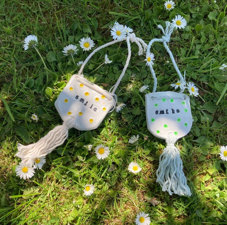 Handmade with air dry clay and macrame cord. these would make a lovely small gift for someone special.