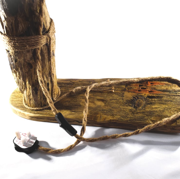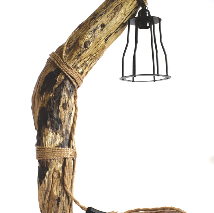 Beautiful rustic driftwood lamp made using driftwood gathered from Cardigan bay