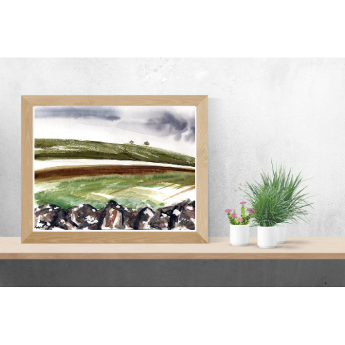 A good quality unframed Giclee print from an original watercolour painting of the Peak District (near Hartington) on a snowy winter's day.