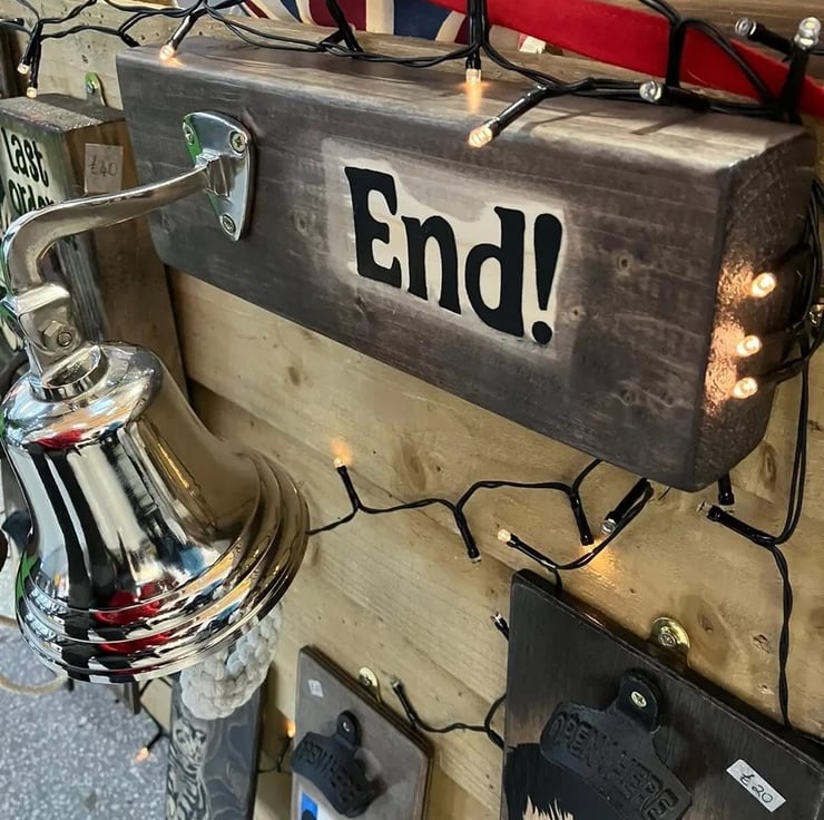 Introducing the Last Orders bell, a timeless and functional addition to any bar or restaurant. This classic bell, with its sleek design and durable construction, is the perfect way to signal for last call or closing time. Its clear, resonant tone can be heard throughout the establishment, ensuring that patrons and staff alike are aware of the impending closure. Crafted with care, this bell is built to withstand the rigours of a busy service environment, making it a worthwhile investment for any hospitality business. Whether you're a seasoned proprietor or a new establishment, the Last Orders bell is an essential tool for maintaining order and efficiency during those final moments of service. With its elegant aesthetic and practical purpose, this bell is sure to become a beloved fixture in your establishment for years to come.
