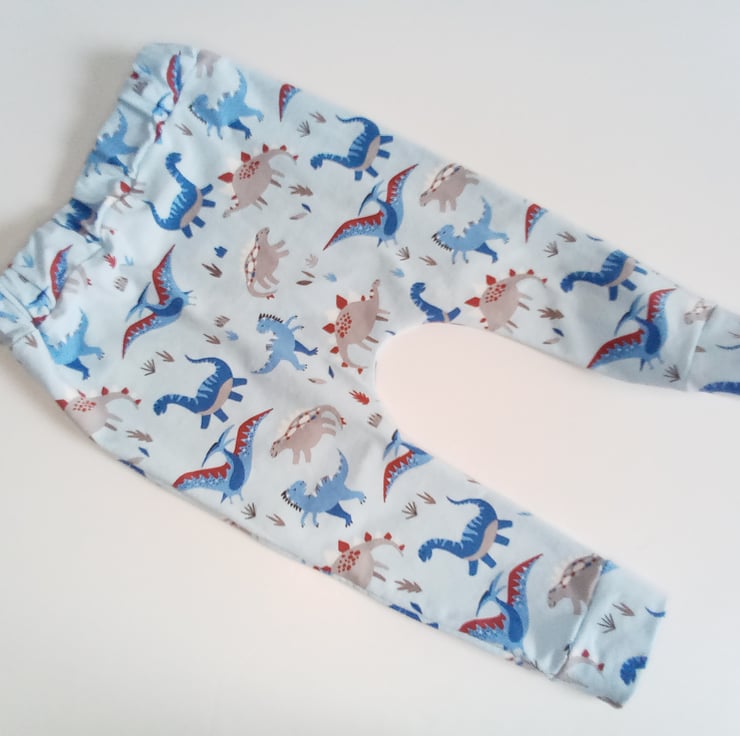 A pair of slouchy leggings in a fun dinosaur design fabric.