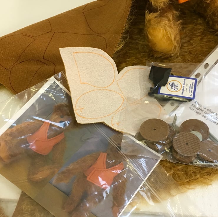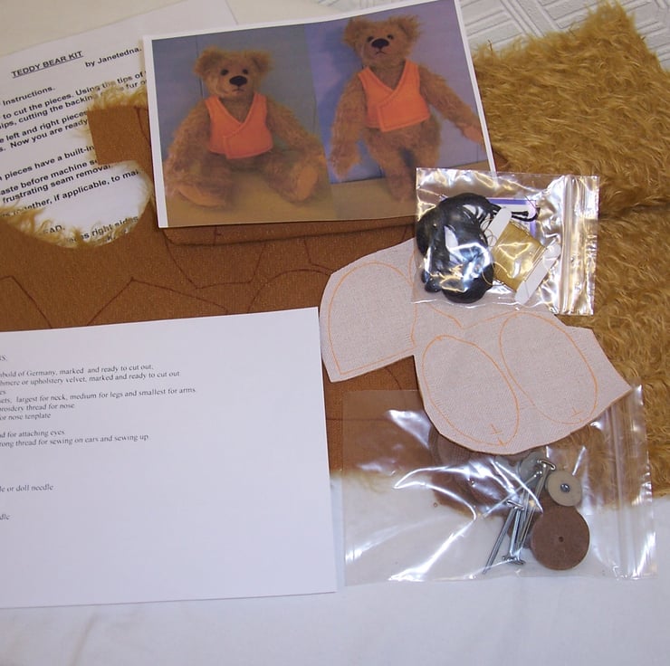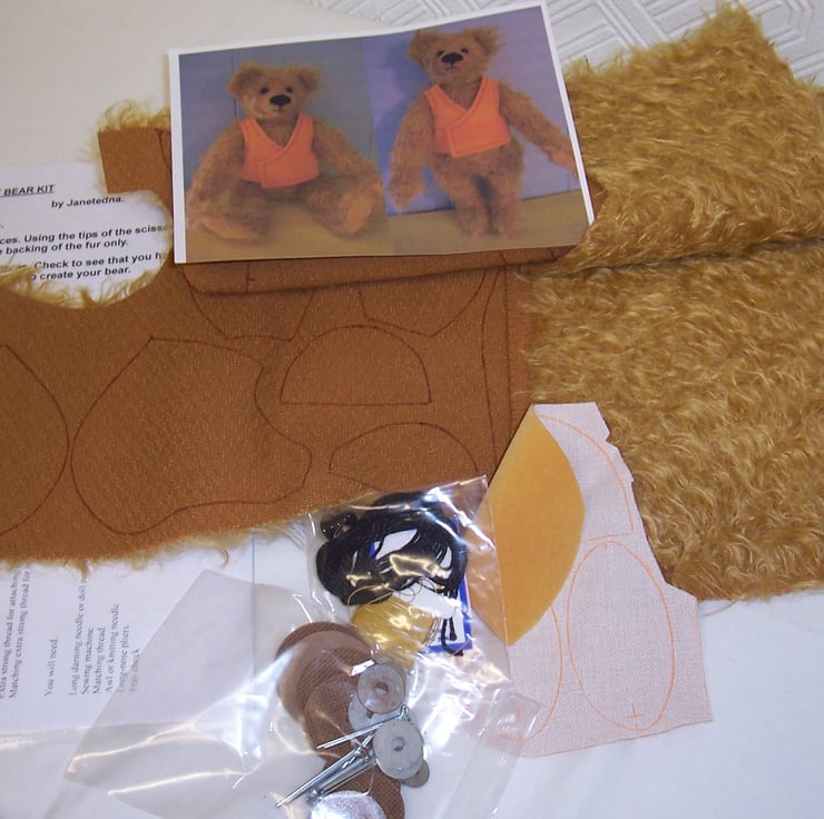 Have you made a teddy bear before but don’t want to end up with a funny shaped piece of very expensive mohair fabric over? Why not buy a kit, ready marked for you to cut out, with no waste and no pattern to buy.