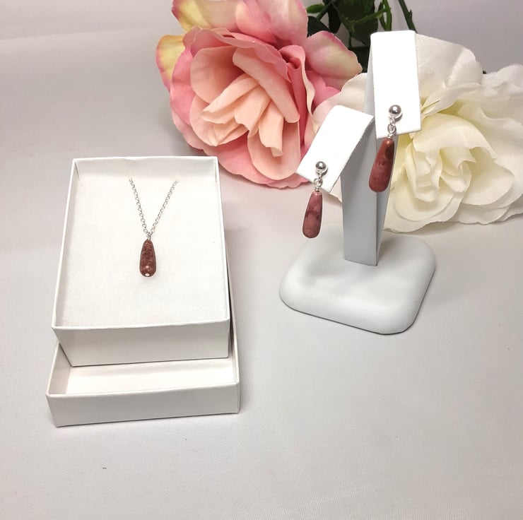 Add a touch of elegance to your jewellery collection with our Rhodonite drop earrings.