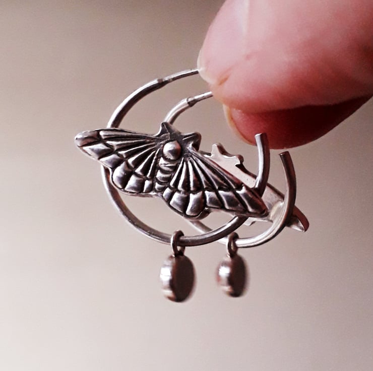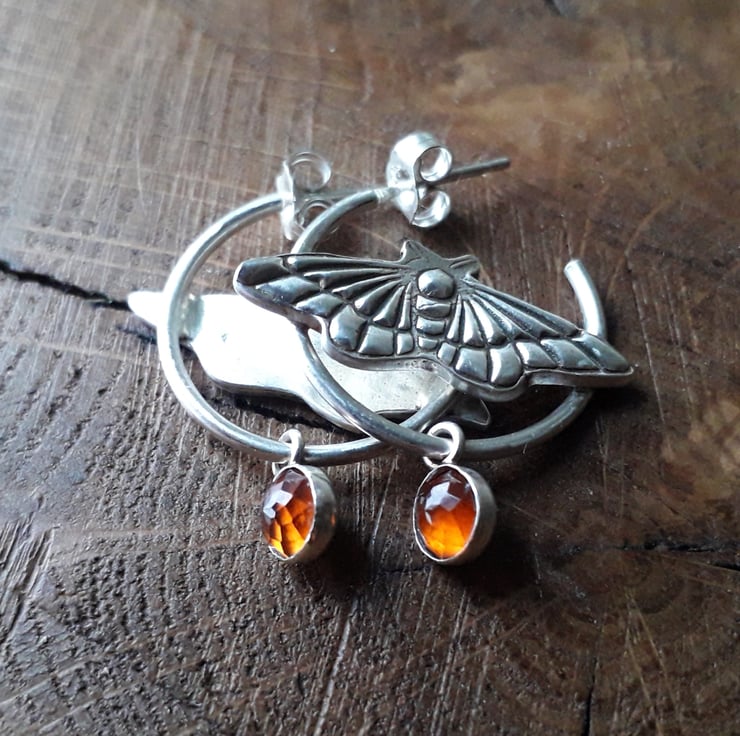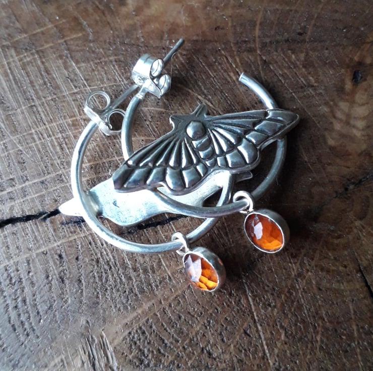 Somewhere between cottagecore and fairycore, rustic and glamorous, wildlife and magic did these beautiful fairy moth hoops come to life. The hessonite garnets have the most beautiful warm orange tinted glow and I imagine this is a colour the moth would have in real life too.