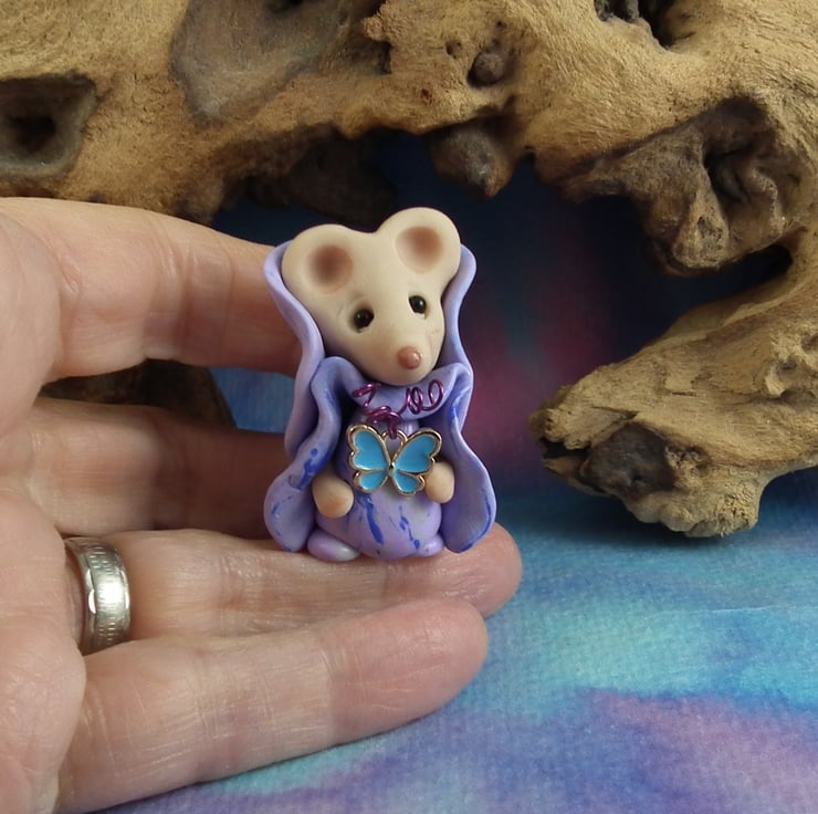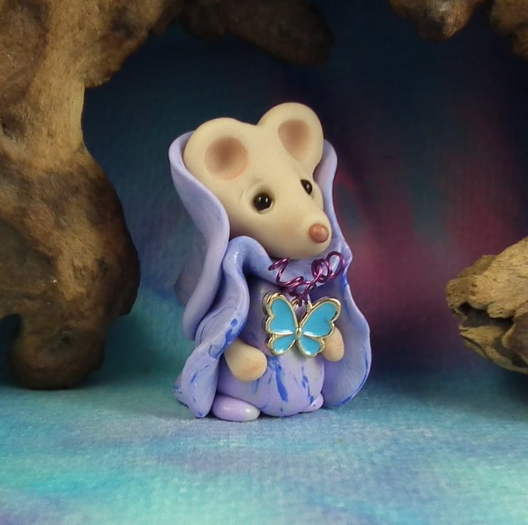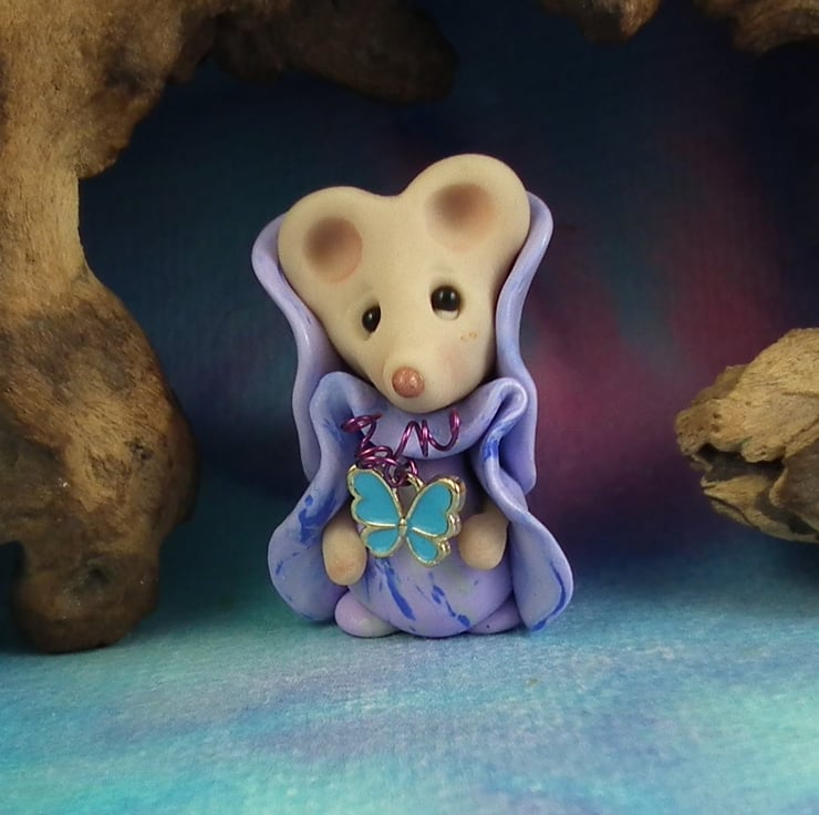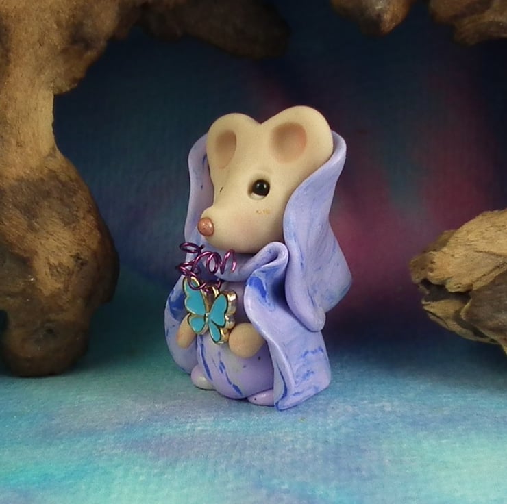 This is a 'one of a kind' creation; entirely handmade without the use of moulds here at my studio on the Sussex Coast. Modelled with artist blend polymers before sealing with lacquer, Aryssa has sparkling black onyx eyes and is one and a half inches high with wired butterfly.