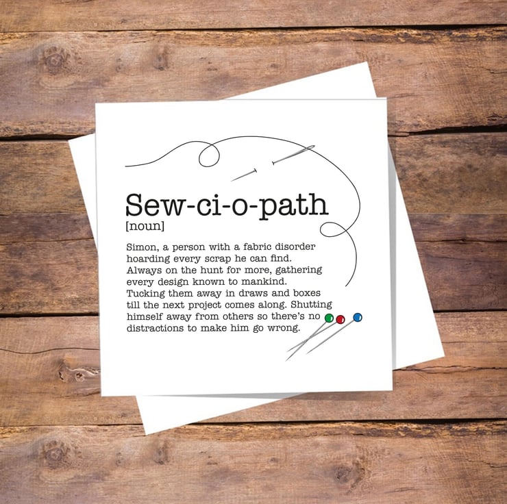 Perfect thank you, birthday card for that person who loves to sew. Personalised on front of the card, add name to 'choose options' when ordering.