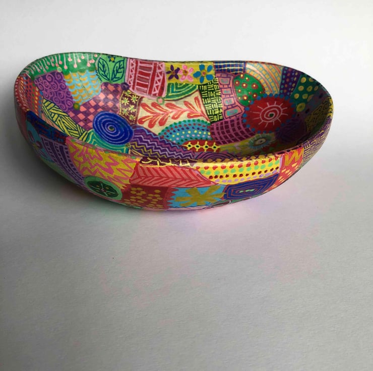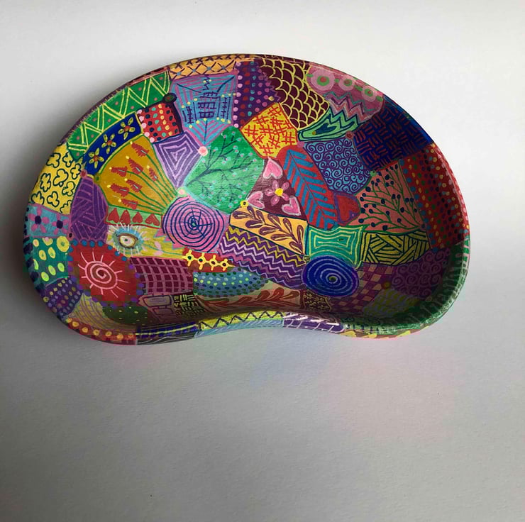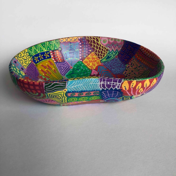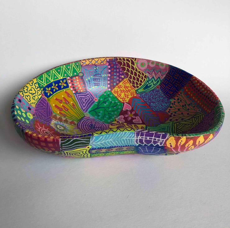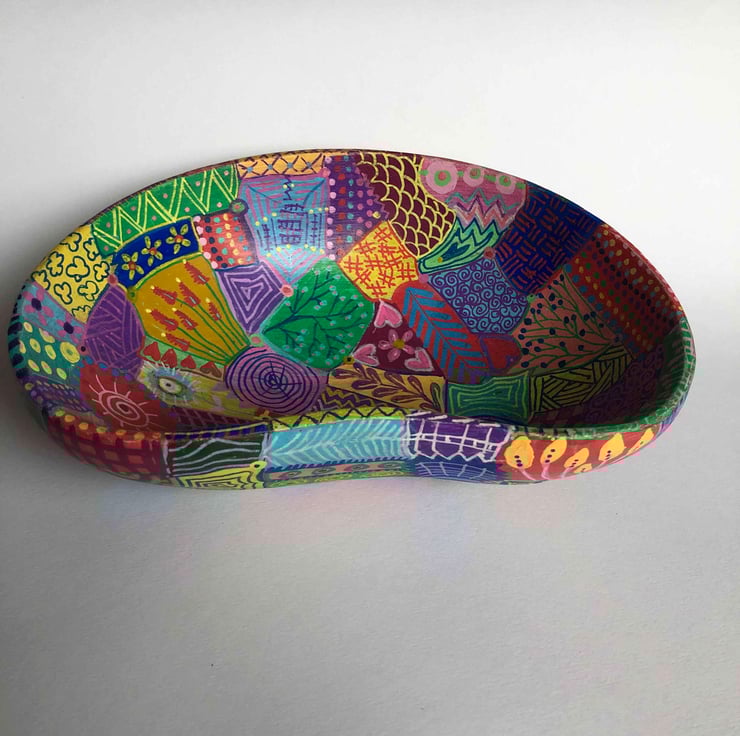 This is an up cycled wooden bowl which is a sweet little item that has been given a new lease of life