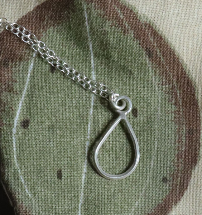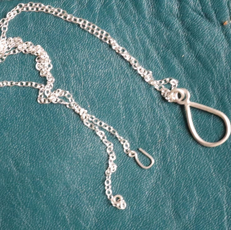 This necklace is handmade from sterling silver wire using traditional silver jewellery techniques. It could be worn on any occasion. The pendant measures 2cms x 1.5cms and the total necklace length is 26cms.